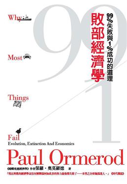 一本讓人不再氣餒的書! 為什麼商店會倒閉?為什麼買股票會賠錢?為什麼連百年歷史的金融機構都毀於一旦? 這是第一本解開人類失敗之謎的書,提出極具說服力、避免落入敗部的方法。 記住:不管你多麼厭惡失敗,失敗對人類其實有很大的好處。 真實的世界,是動態的變化的結果, 一次又一次的失敗,反而強化了整體人類的適應力,並且製造下一個贏家。 萬一,你身在敗部,別氣餒,也許下一刻你已經翻身。 被美國商業週刊(Businessweek)譽為「非正統自由經濟學家」的保羅‧奧莫羅德,所完成的這部《敗部經濟學》,是他繼《蝴蝶效應經濟學》之後,另一部重要的著作,告訴我們如何正確認識人類生活中「失敗的鐵律」,以及該怎麼做,才能避免失敗。 這是一本「吐槽經濟學」的書!全球各地的報紙都以顯著版面報導企業醜聞——以及大規模的崩盤——而投資人則有如熱鍋上的螞蟻,急於脫身。對這樣的災難,我們都頗感意外——然而,絕種是生命的宿命,而企業不論大小,失敗都將不斷地降臨在其身上。在英國,有一年就有一萬七千多家公司倒閉。但這是壞事嗎?如果是壞事,為什麼美國經濟如此龐大而又活力十足,每年卻還有百分之十以上的企業陣亡?暢銷書《經濟學之死》及《蝴蝶效應經濟學》的作者,對大多數人所忽略的事實,提出了開創性的看法:商業投資及公共政策大多數並不會成功。奧莫羅德引用生物學最新發展,協助我們了解失敗鐵律這項驚人事實。他還告訴我們,在這個只有一件事是肯定的世界裡,公司、企業和政府應該採取何種策略,才會有繁榮的機會。