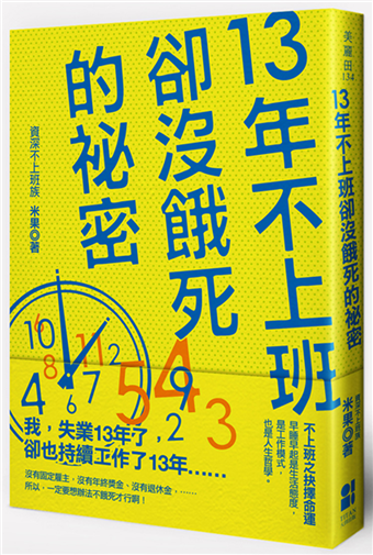「因為自由不是肢體的怠惰,也不是隨心所欲,自由必須透過勤奮的工作才能換得短暫的悠閒,這13年以來,我所深刻體會的自由,其實不是時間與勞力支配的多寡,而是透過自律的拘謹才換得來的快樂。」完全一語道破13年不上班卻沒餓死的祕密之精隨。