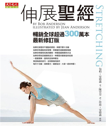全球最知名的伸展權威安德森在本書中,綜合自身多年經驗,為您詳細剖析每種伸展方法的原理,教您如何漸次伸展全身肌肉。安德森針對身體各個部位如肩、背、臀、腿、手、腕,以及不同狀況如起床前後、打電腦、久坐之後、坐飛機等,還有不同職業、年紀的人,設計出人人都需要的伸展操。即使是最忙碌、最懶得運動的人,安德森也沒放過,他設計出可讓你邊看電視邊做的伸展操,保證讓你氣脈暢通、疲倦盡消。