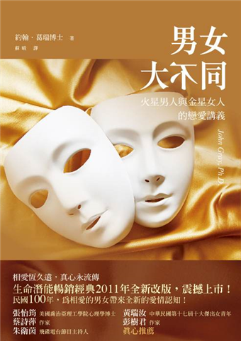 金星人與火星人的語法辭典,男女愛情關係指南──本書作者約翰.葛瑞博士研究男女相處之道逾三十年,以幽默的比喻指出男女的天生差異,輕鬆詼諧卻又一針見血,解決了因男女的不同所引起的問題,同時具有心理學差異的理論分析,是增進愛情關係的最佳指南。本書永遠改變了男女看待彼此關係的方式,全球男女皆熱愛並熟讀此書,堪稱是一本跨世代的愛情聖典!更是男人與女人都必讀的戀愛講義!