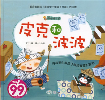 本書為配合教育部「推廣中小學親子共讀」目標所編輯的故事繪本。書中溫馨的對話及有趣的情境,讓孩子隨著故事主角皮克和波波的帶領,一起動動腦、想一想百變紙袋的新創意。藉由閱讀培養孩子珍惜資源的觀念。此外,書中的「一起玩一玩」是配合故事主題的延伸遊戲,也是親子互動的最佳橋梁!