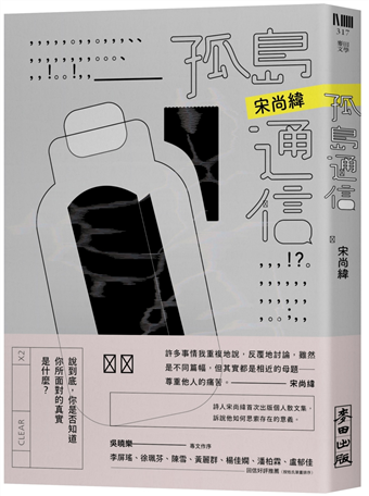 我寫作至今碰過最大的一個障礙是我認知到語言跟文字有其侷限時,我突然不知道該怎麼寫了。因為我覺得我無論如何書寫,最後通向的都是虛無。我無論如何書寫,我都沒有辦法將那些傷心完美的陳述出來。我至今仍是如此覺得,在書寫的時候感受的傳遞是遞減的,且我永遠無法確知我的感受跟他人的感受是不是在同一個頻道上,因為我在我自己的島上,他人也在他自己的島上。
