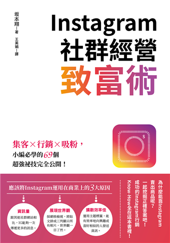 商品特色*台灣暢銷書《Facebook社群經營致富術》作者續作!IG社群小編必讀!
