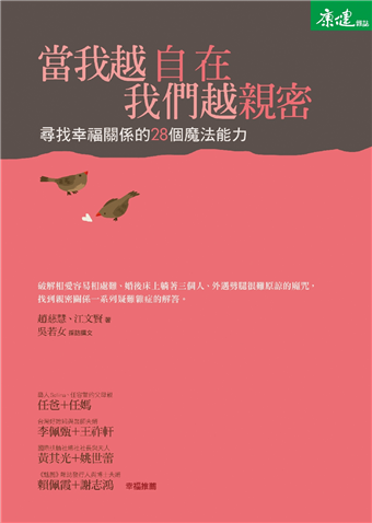幸福的親密關係不必等別人帶給你,一切要從自己主動開始。愛上一個人靠際遇,持續愛一個人靠努力,只有放下「想要改變對方符合自己期待」的企圖,願意彼此尊重和接納時,才是真正的親密。