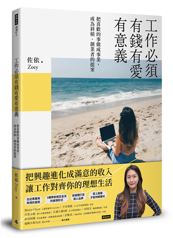 這本書獻給和我一樣曾經迷惘或正在迷惘的你。我們的生活必須要有錢、有愛、有意義,這可能是十歲孩子都懂得道理,然而,我們一輩子花這麼多時間在工作(平均至少有40年)工作已經成為我們生活中的一大部分,因此你的工作(無論你做什麼)也一定一定要有錢,要有愛,也一定要有意義,不然,你會像以前的我一樣,追逐著無數個人生目標卻永遠沒有滿足的一天,如果這些目標是很快就能達成的,那就算了,但就怕這些目標需要花你好多錢、好多心力,甚至是好幾年的時間,到了最後才發現這根本不是什麼人生目標,這些只是為了逃避而做的準備。