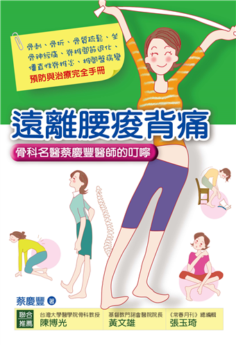 這些都是典型的腰痠背痛症狀,輕者影響作息,重者不良於行。骨科名醫蔡慶豐醫師以多年豐富臨床經驗,提供您快速掌握日常生活的預防與保健訣竅,從此遠離腰痠背痛!