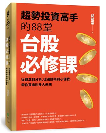 毓棠這本《趨勢投資高手的88堂台股必修課》,即是從大家心中可能會有的88個提問出發,基本面、技術面、籌碼面、ETF投資、存股,乃至投資心理學,通通系統化地幫你解答,適合小白,也適合已經有點基礎但想讓觀念更周全的投資朋友閱讀。