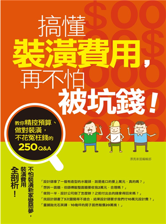 從打算購屋裝修開始,到籌措裝修費用,預算評估及施工進行時的裝修金額追加,甚至到最後的維修及保固問題等問題,各自獨立收錄成一個章節,讀者可以在最短的時間內找到解答,迅速搞定裝修費用,一點也不難。