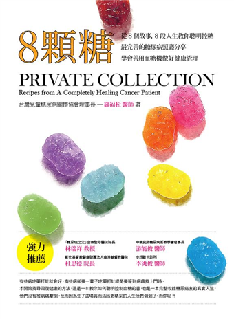 《 8顆糖 》裡的主角,因為都罹患第1型糖尿病,而在這本書中分享如何與糖尿病和平共處的機會-人生故事中的賴淑惠一口氣照顧兩個糖孩子,發病時3歲的孟筑與9歲的孟琦外,還是天主教若瑟醫院的義工,幫助許多彷徨無助的家長,和學校溝通,一步一步拉拔這群孩子長大;全銘3歲半發病,在父親與教練的指導下,自己配合照顧健康與勤奮練習,現在可是揚名國內外極限運動競技賽中最年輕的優秀選手;「針筒畫家」傳根六歲得病,從不間斷對繪畫與生命的熱愛,透過一件件精彩的創作與得獎作品,表達了糖友內心的世界與奮鬥的歷程;珮辰8歲開始成為糖孩子,12歲就完成「12天環島單車成人禮」,在台東醫療團隊與糖友大家長「林爺爺」的鼓勵與提點,與父親與哥哥陪同下,「踏步前進,轉動希望」邁向新的人生旅程;筑婷10歲起開始展開「與糖和鳴」的歲月,獨立、勤奮、樂觀進取的她,現在已是兩度於國家音樂廳登台家喻戶曉的口琴演奏家,父母親也早就將對女兒同樣的那份愛,透過對康泰基金會的投入,散佈到全台;有著糖尿病衛教師與糖友雙重身分的婉玲18歲發病,以坦然及負責的態度,贏得美滿的婚姻與家庭,身為兩個孩子母親的她,用數萬次的血糖檢測詠唱出「愛的真諦」;志洋在35歲的壯年開始展開控糖行動,人生從此開始改觀,透過運動不僅重拾健康,即使超過百公里的馬拉松,都能穩健地踏出每一步,時時掌握血糖的波動。