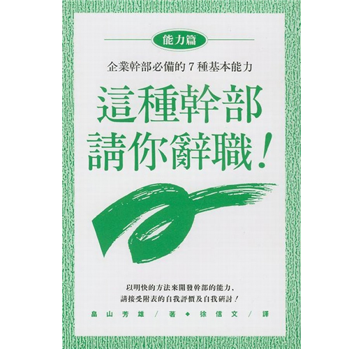 企業幹部必備的七種能力以明快的方法來開發幹部的能力請接受附表的自我評價及自我研討 在各種集團中,幹部乃是居於指導者的地位,例如:企業界的經營者、部長、課長、股長、領班等均稱為幹部,而政府機關、社團、地方自治體、醫院、學校、工會以及各種團體等,也都有幹部的存在,這些人的共同點是「推動他人工作」,組織命運的好壞完全操於幹部手中。因此幹部的素質很重要。 本書介紹一個稱職的幹部必須具備的七項能力:(1)自我設定目標的能力,(2)發現方法的能力,(3)組織能力,(4)傳達能力,(5)誘發部屬行動的能力,(6)培育部屬的能力,(7)自我革新的能力。讀者可以利用本書作自我啟發,亦可與同事及下屬共同研習。 本書的內容並不深奧,凡是在幹部職位待過的都知道其中的道理,不過,知識與行動是完全不同的兩回事,而幹部的優劣是建立在實際行動上,而非知識量的多寡。 本書有三種使用方法: 第一種是讀書用:將本書依照自己的習慣來閱讀,只要對你的自我教育有幫助就可以了。如果你現在尚未有部屬,可用這種方法。 第二種是自習用:如果你身居幹部之職,筆者鼓勵你用這種方法。首先準備一枝筆,從頭開始閱讀,途中必須一邊自我查核一邊閱讀,最後依據自己寫好的評價表重新檢討,並研究該用什麼方法改進。 第三種是幹部共同研究用:主事者指示幹部各自研習,然後共同舉行研討會,互相啟發、互相交換意見,另外,幹部也可私底下和同事進行討論。