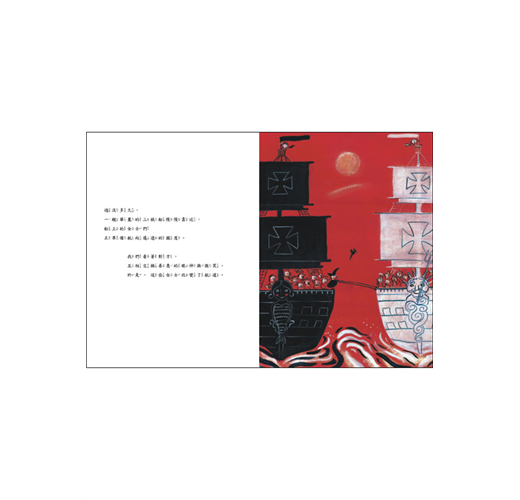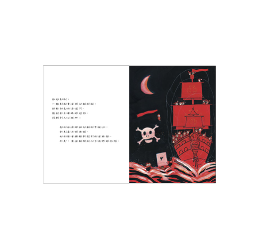 『北市圖好書大家讀』 書評推薦:許敏雄(國立臺灣藝術大學美術系講師)想當船長出海遨遊,自由自在的航向未知的遠方,似乎是許多孩子的夢想。本書以以航海日誌般的敘述,勾勒一個充滿冒險開創精神的航海夢。一隻小小的船,一個舵手跟隨著他的老船長,一起出發,沿途將會遇上?些驚奇新鮮的事呢?會找到怎樣的寶藏呢?故事以途中所遇到的不同的人們為點,一段段的串連起人際關係,團體相處的軸線。如何跟不預期出現在人生旅途中的人們愉快相處,還能保有自己的獨立性,自己的夢想?故事在暢快的航行中,同時也蘊含了這樣的課題,幫助孩子建立信念。書中插畫以紅色為主,配合黑、白組成畫面基調。運用底層刷痕、刮擦、薄塗等技法,使呈顯的色面,有豐富的紅色色階,在視覺效果上既統一又不失變化。以紅色來敘說海洋的故事,更是出乎我們預料的有趣。如果你曾見過孩子以床上的棉被堆疊出舟車船艦,自得其樂,或邀約同遊,當能了悟本書精隨。