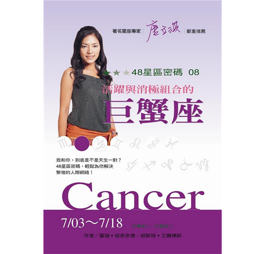 巨蟹座二(CancerII)個性的一週:7月3~10日巨蟹二的代表意象是「個性化」,這段期間好比是年輕歲月,唯一感興趣的即是脫軌、不尋常的人事物。為了實現獨一無二的自我,他們或許會著重於這方面的挑戰,但方法和青春期的行為模式不同,比較像是在維護獨立的自我。他們思考和閱讀的範圍無所不包,不認為有哪一門領域是不好的,也不覺得有什麼事不能做。這個時期的他們完全瞭解隱私權的價值,以及個人內在生活的珍貴。巨蟹二的外表看起來可能很正常,從事的工作可能也十分普通,但他們會不由自主地受到不尋常或怪異的事物所吸引。在同事和伙伴當中,很少有人獲准進入他們的秘密世界,通常只有交往數年的親密朋友,才能瞭解他們奇特、怪異的幻想是多麼貼切地反映出他們內心的真實面。巨蟹座三(CancerIII)說客的一週:7月11~18日年輕人高昂的興致,很能代表巨蟹三這一週。他們透過種種方式來證明自己也是一號人物,譬如對事業的投入、因勢利導的運用手腕、說服別人相信自己的價值和傑出的能力,以及利用手邊的物質條件建立起持久、堅實的架構。他們是熱情之士,瞭解人類強烈的情感。如果缺乏安全感可以視為巨蟹三野心背後的動力馬達,那麼,他們的熱情就可以視為汽油,至於內心的信念則會讓他們熱血沸騰。透過與志趣相投的人交往,他們的構想得以有穩固的支持力量。當別人確信他們是為了組織或團體的最高利益工作時,不但不會反對,通常也能提供各種協助。巨蟹三於公於私都是屬於具有重大影響力的幕後人物。他們會是很傑出的主管和評判者,對於別人的缺陷和弱點具有第六感,通常還會提供建議和方向做為矯正,即使那是極度棘手的難題。