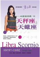 天秤天蠍座(Libra-ScorpioCusp)戲劇與批判的交界:10月19~25日感官和熱情是這一週出生者生命中重要的課題。然而,在實際的人際關係中,他們卻會把這兩者劃分開來,認為性慾和感官慾望截然不同,認為一種關係中只存在一種慾望,不會同時有兩種慾望發生在同一種關係上。因為對他們而言,感官是用來珍愛周遭的美的事物,或是欣賞藝術、音樂、文學之用的,跟熱情的用處截然不同。與他們處在浪漫愛情中的人,必須注意防範對戀愛關係過於執著。過份深刻的戀情,在發展到不正常或不健康的程度時,會導致依賴度降低,痛苦慘烈地分手,其情景有如戒毒一般痛苦。因此,成功的天蠍天秤的人格特質,就是能夠好好處理人際關係,讓雙方各自享有獨自的空間,保有自己的本質。較不成功的,就可能注定要面對處理關係失敗的痛苦。不過,在這一週出生的人,仍然可能擁有充滿愛情跟友誼的婚姻,而且能大無畏地克服各種困難與挑戰。天蠍座一(ScorpioI)強烈的一週:10月26日~11月2日這一週出生的人很清楚自己所做的事,並因為能為自己的行為負責而感到十分驕傲。因此,假使有人做了什麼違背他們的事,他們就會認為對方是故意的,不相信對方只是不小心或一時無知而犯錯,所以很容易引發衝突與爭執場面。再者,他們也不接受任何藉口,像是遲到的理由,或是純粹因為忘記而未能赴約。對他們來說,聲稱記性不好,只是一種蓄意傷害的藉口;同樣地,他們也不一定會全盤接受事後的道歉。他們可以接受做錯事,但是絕對無法原諒居心不良,這是他們十分特別的個性特質。或許,對他們而言,原諒別人很困難;但是要他們忘記別人對自己的輕視、強迫屈就、或是對自己聰明才智的侮辱,卻是絕對不可能的。面對別人的批評,他們臉皮薄而易怒,所以朋友們要小心翼翼,避免和他們發生衝突。這些衝突可能會對友誼產生破壞,導致決裂;但也可能因為全部攤開來說清楚,因而加深了友誼,鞏固彼此的信任感。