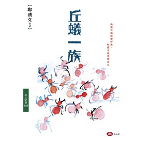 名人推薦:動物和神話都有變形。動物的變是生存上的現象,神話代表人類的想法。果然,我們在台灣也看到,很多人想變形,很多人在變形,人,因為變形得到好處。用這個「變形,不變性」的原則,來看鄭清文的《丘蟻一族》也很有趣。變形可以得到好處,也可以保護自己。本來是要保護自己,後來變成攻擊別人。變形也是一種偽裝。藉由偽裝,可以虛構自己的權力和地位。偽裝久了,卻完全認不得自己。——中原大學心理系副教授鄭谷苑