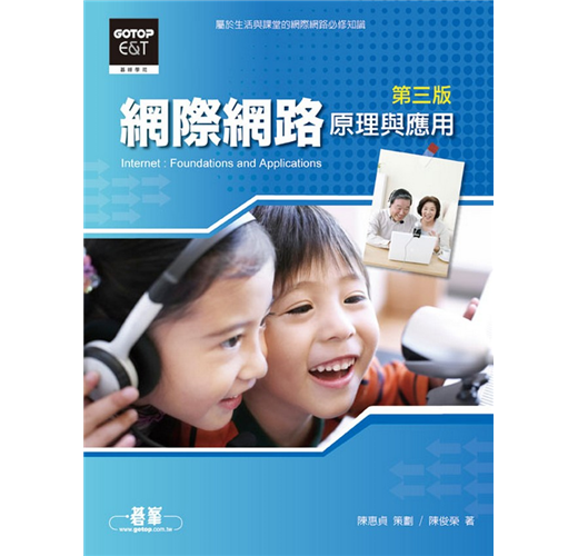 ComputerNetworkingandtheInternet屬於生活與課堂的網際網路必修知識內容涵蓋電腦網路的原理與應用、Internet的原理與應用、資源設定、連線分享、WWW、E-mail、新聞群組、Telnet、BBS、FTP、P2P、即時通訊、網路電話、線上廣播、線上影視、自然人憑證、網路相簿、部落格、電子商務、資訊安全與隱私權、電腦病毒、HTML網頁設計…,掌握最新知識,實際上機操作,輕鬆悠遊網際網路的世界。生動解說+豐富圖片+應用實務+實用技巧「電腦網路」:內容涵蓋電腦網路的用途、類型(LAN、WAN、MAN、Internet、無線網路)、主從式網路V.S.對等式網路、網路作業系統、OSI參考模型、網路拓樸、網路傳輸媒介、常見的網路硬體設備及區域網路標準。「網際網路」:內容涵蓋Internet的用途、起源、實用的Internet資源、寬頻上網的方式(ADSL、CableModem、FTTX光世代)、3.5G行動上網、TCP/IP參考模型、Internet命名規則。「連線設定」:實際示範如何設定ADSL寬頻上網、無線上網及3.5行動上網。「資源分享」:實際示範如何設定遠端管理及區域網路的資源分享,包括檔案、資料夾與印表機分享。「全球資訊網」:實際示範如何使用InternetExplorer瀏覽全球資訊網。「電子郵件」:實際示範如何使用WindowsMail收發電子郵件。「新聞群組」:實際示範如何使用WindowsMail收發新聞群組。「BBS與檔案傳輸」:實際示範如何使用Telnet、BBS、FTP、P2P,以及檔案下載回來後應該如何處理。「即時通訊」:實際示範如何使用WindowsLiveMessenger。「網路電話」:實際示範如何使用Skype。「Internet的生活應用」:實際示範如何使用線上遊戲、網路購物、網路競標、網路拍賣、線上廣播、線上影視、線上求職、網路銀行、自然人憑證、網路相簿、部落格等生活應用。「電子商務」:內容涵蓋電子商務的模式(B2B、B2C、C2C、B2G)、行動商務、電子付款系統、線上交易的安全機制(SSL、SET)、電子市集。「資訊安全與隱私權」:內容涵蓋危及資訊安全的因素、身分認證、資訊竊盜、軟體竊盜、硬體竊盜、加密/解密、數位簽章、備份與復原、Web安全、電腦犯罪的手法、類型、刑責、蒐證與起訴、資訊隱私權。「電腦病毒」:內容涵蓋電腦病毒/特洛依木馬/網路蠕蟲、間諜軟體/廣告軟體、網路釣魚、垃圾郵件等惡意程式及其防治之道。「HTML網頁設計」:以簡明扼要的範例為您講解HTML的語法,即使是沒有學過任何程式語言的讀者,也能以HTML設計網頁。