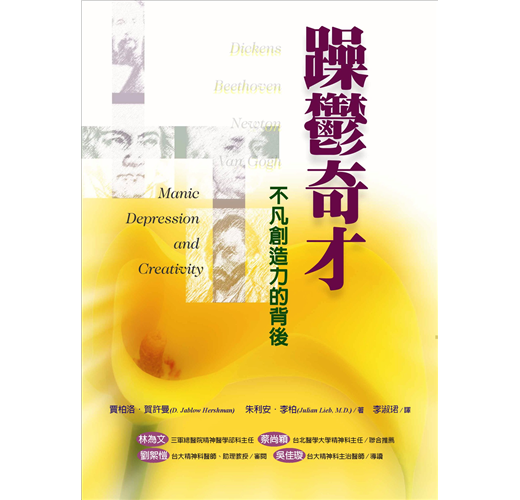 本書精采呈現躁鬱症在貝多芬、狄更斯、牛頓、梵谷這四位曠世奇才生命中所扮演的角色,不只帶給他們負面影響,亦展現出將才能轉化為天才的正面意義。因著這些天才精采的生命故事,讓我們更明白只要適當控制病情,躁鬱症患者亦能將狂躁期激發的巨大能量,轉成豐富的創造力,進而創造非凡閃耀的美麗人生!