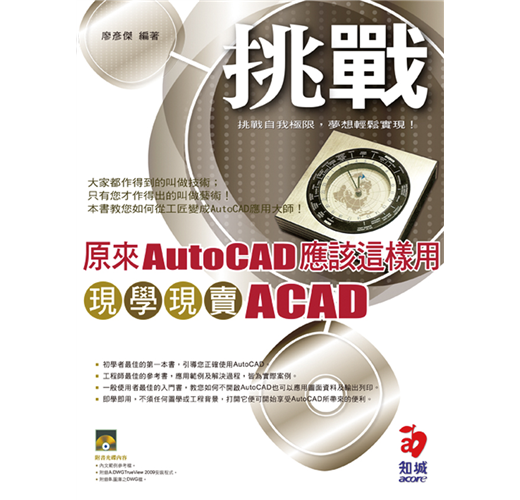 訂購本商品前請務必詳閱退換貨原則。本書特色適用於AutoCAD2006~2008。初學者最佳的第一本書,引導您正確使用AutoCAD。工程師最佳的參考書,應用範例及解決過程,皆為實際案例。一般使用者最佳的入門書,教您如何不開啟AutoCAD也可以應用圖面資料及輸出列印。即學即用,不須任何圖學或工程背景,打開它便可開始享受AutoCAD所帶來的便利。★全書以使用者角度來撰寫這是一本以使用者角度為基礎的工具書,本書不再依序介紹AutoCAD有些功能、或指令該如何操作,而是以“如果我要用AutoCAD解決這個問題,那該如何用?”及“這個需求是否AutoCAD能協助我解決,我該如何判斷?”教您如何正確適時地使用AutoCAD處理相關問題,進而引起您的興趣並藉由不斷地操作而熟悉指令的操作。★讓您以實用的方式來學習工具學了就是為了能用得到,不是學了一堆臨場卻不知所措?所以本書依不同程度的使用者需求,從只聽過AutoCAD的人該如何馬上用得到它,到必須依賴AutoCAD生活的人該如何提升應用效率,全書皆採詳解AutoCAD如何解決問題的過程步驟,來增強您對AutoCAD功能的了解。★全書範例皆為實際案例作者所精心挑選的範例,皆為實際發生的應用實例,並藉由這些實例的詳述,使您可以更加了解AutoCAD在什麼狀況該如何地使用,才會發揮它最佳的效益,同時令您了解該如何視自已的需求去充實那方面的AutoCAD功能,讓您適學適用不浪費任何無用的時間或精力。★作者絕無僅有的私房秘笈包證其他同類書籍沒有提到的應用,這些都是作者20多年浸淫AutoCAD世界中,所經歷及累積的解決問題技巧,每道秘笈皆是職場上實際應用的手法,絕不藏私完全公開,令您在短期間便可迅速提升應用的功力,從容應付工作上可能面對相關應用。★附書光碟內容:範例練習檔★知城圖書讀者回娘家,好禮送給您,寄回【讀者回函】,立即免費送給您價值399元起,影音教學DVD第一品牌【多媒體學園-互動式多媒體影音教學DVD】可任意挑選要學習的品項,詳細活動內容請參閱【讀者回函】內頁。章節簡介Chapter1號稱我也會AutoCAD(老闆級)1-1.檔案的管理1-1-1.AutoCAD的重要檔案類型1-1-2.開啟舊檔/儲存/另存圖檔/關閉檔案1-1-3.儲存/另存圖檔/關閉檔案1-2.出圖1-2-1.簡易的彩色/黑白出圖1-2-2.將圖檔輸出為PDF格式1-3.擷取圖面的應用1-3-1.將AutoCAD螢幕背景改成白底1-3-2.將AutoCAD的圖面剪貼到Windows的應用程式1-3-3.由Windows的所建立的物件插入AutoCAD的圖面中1-4.範例練習Chapter2我會利用AutoCAD圖面資料(秘書級)2-1.圖面資料的查詢2-1-1.相對座標的查詢2-1-2.長度的測量2-1-3.面積的測量2-1-4.體積的測量2-1-5.計算物件的數量2-2圖面的檢視2-2-1.即時的檢視2-2-2.視埠的應用2-2-3.視覺效果的設定2-3.範例練習Chapter3我會加工AutoCAD圖面資料(主管級)3-1.不用開啟AutoCAD也能作到的事3-1-1.轉檔3-1-2.出圖3-1-3.圖面的檢視3-1-4.圖面資料的查詢3-2.在AutoCAD圖面上的註解加工3-2-1.建立文字3-2-2.匯入文字3-2-3.編輯文字3-2-4.文字的尋找及取代3-2-5.加入或編輯尺寸標註3-3.圖元屬性的應用3-3-1.圖層的應用3-3-2.線型的應用3-3-3.線型比例3-4.範例:Chapter4我會從無到有建立AutoCAD圖面資料(工程師級)4-1.工作環境的規劃4-1-1.正確製圖的觀念4-1-2Auto“DESK”電腦製圖桌4-1-3.繪圖輔助的設定4-1-4.物件鎖點模式4-2.製圖的工具4-2-1.繪圖工具的使用4-2-2.編輯工具的使用4-2-3.標註工具的使用4-2-4.繪製等角圖的技巧4-3.範例練習4-3-1.請繪出以下的平面圖4-3-2.請繪出以下的等角圖Chapter5我可以完全掌握AutoCAD(大師級)5-1.更進階的應用5-1-1.圖塊5-1-2.參照5-1-3.圖面配置5-1-4.配置出圖5-2.標準化的應用5-2-1.樣板檔5-2-2.多圖資料的標準化-標準檔5-2-3.出圖環境的標準化-頁面設置管理員5-3.自訂專屬的AutoCAD5-3-1.自定字型5-3-2.自訂標註型式5-3-3.自訂工具列5-4.練習範例ChapterA下載及安裝AutoCAD2009TrueView如何下載A-1安裝DWGTrueview2009A-4ChapterB圖庫目錄知城圖書網站:www.acore.com.tw