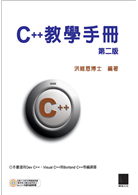 PART1(基礎程式設計)1.認識C++2.簡單的C++3.變數與資料處裡4.運算子、運算式與敘述PART2(進階程式設計)5.選擇性敘述與迴圈6.函數7.再談函數8.陣列與字串9.指標10.再談指標11.結構與其它資料型態PART3(OOP程式設計)12.類別的基本架構13.類別的進階認識14.解構元與拷貝建構元15.運算子的多載16.繼承17.虛擬函數與抽象類別PART4(OOP進階/應用)18.檔案處裡19.例外處理與樣板20.大型程式的發展