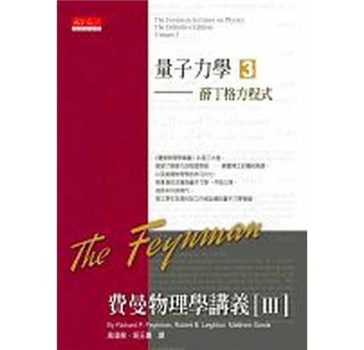 費曼物理學講義III量子力學(3)薛丁格方程式目錄第15章獨立粒子近似15-1自旋波15-2兩個自旋波15-3獨立粒子15-4苯分子15-5更多有機化學15-6獨立粒子近似的其他應用第16章機率幅與位置的關係16-1一條線上的機率幅16-2波函數16-3具有明確動量的狀態16-4位置波函數的歸一化16-5薛丁格方程式16-6量子化能階第17章對稱與守恆律17-1對稱17-2對稱與守恆17-3守恆律17-4偏振光17-5Λ0的衰變17-6旋轉矩陣概要第18章角動量18-1電偶極輻射18-2光散射18-3正子電子偶的消滅18-4任何自旋的旋轉矩陣18-5測量核自旋18-6角動量合成注解1旋轉矩陣的推導注解2光子發射中的宇稱守恆第19章氫原子與週期表19-1氫原子的薛丁格方程式19-2球對稱解19-3取決於角度的狀態19-4氫原子的一般解19-5氫原子波函數19-6週期表第20章算符20-1作用與算符20-2平均能量20-3原子的平均能量20-4位置算符20-5動量算符20-6角動量20-7隨時間變化的平均值第21章古典情境中的薛丁格方程式:一場關於超導體的演講21-1磁場中的薛丁格方程式21-2機率的連續方程式21-3兩種動量21-4波函數的意義21-5超導體21-6麥士納效應21-7磁通量子化21-8超導體動力學21-9約瑟夫森接面費曼的結語附錄第34章物質的磁性34-1反磁性與順磁性34-2磁矩與角動量34-3原子磁體的進動34-4反磁性34-5拉莫定理34-6古典物理中不存在反磁性及順磁性34-7量子力學的角動量34-8原子的磁能附錄第35章順磁性與磁共振35-1量子化的磁性能態35-2斯特恩—格拉赫實驗35-3拉比分子束法35-4塊材之順磁性35-5絕熱去磁冷卻35-6核磁共振中英、英中對照索引