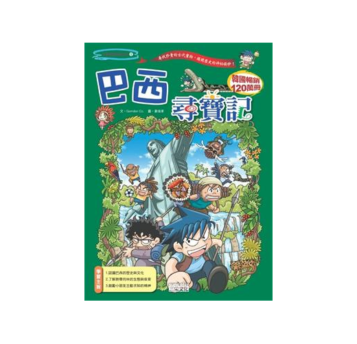 1.本套書特色在於「從世界看國家」,挑選出最引人入勝、最吸引人的主題作為主軸,強化小朋友對巴西的印象。