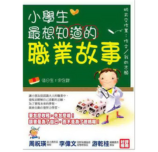 周祝瑛政大教育系教授李偉文荒野保護協會榮譽理事長游乾桂親職教育專家推薦序一學會思考、學會生存 對國人而言,小學可能是人生最快樂的時光,因為沒有升學考試,不必像中學生,每天上學早出晚歸,有考不完的試、讀不完的書和做不完的功課。其實包括筆者在內,等到長大以後,才發現原來過去那些課本上的知識,那些考試要記的東西,早就遺忘殆盡,甚至從未派上用場!既然如此,為何當初要如此辛苦的求學?為的是什麼? 其實這裡牽涉到一個基本的問題,那就是往往個人所學與生活脫節。國內的家長與老師很少花時間,坐下來與孩子談談有關他個人的理想、與志趣,教育過程也很少去協助孩子去瞭解自己的個性與特長。於是很多人上了大學還是存著這樣的疑惑:為何要讀大學?其實如果我們父母與老師早一點留意孩子的性向與志趣,並多花一點時間在這方面輔導孩子,我想我們的下一代生活會更有方向與目標! 回想筆者在國外進修時,經常看到中小學老師在徵求家長到學校現身說法,介紹自己的行業給學生知道,並回答各式各樣有關職業上的問題,從在校所學、選擇職業、工作內容、家庭兼顧、到待遇福利等五花八門等有趣問題。通常上過這些課程的孩子會開始想像自己的未來,甚至任課老師會出一份讓學生有機會思考與規劃自己未來的可能發展作文,如:二十年後的我。因此,筆者欣見國內也有類似書籍,介紹小學生最想知道的職業秘密,不但可以提醒成年人孩子的想法,也可讓許多孩子提早思考自己的興趣,瞭解工作是什麼?以及現在上學有何意義?正因如此,筆者很樂意推薦此書,也十分羨慕孩子有機會去認識那麼多有趣的職業秘密。政大教育系周祝瑛推薦序二最浪漫的呼喚與最現實的條件──孩子的「就業力」推薦序 每年一到考試選填志願或畢業準備找工作時,大部份的家長恐怕都會相當傷腦筋,該給孩子什麼建議? 我們或許瞭解要支持孩子的興趣與意願,可是,假如孩子自己也搞不清楚什麼是自己真正喜歡的工作呢?也有可能即便我們願意當個開明的父母,放手讓孩子決定,可是孩子有沒有可能也會被社會價值觀所左右,只看到職業中光鮮亮麗或接受鼓掌與榮耀的一面,不清楚每個行業背後所需的準備或努力? 當然,現代有各種性向測驗來幫助我們瞭解自己的能力所在,但是每種書面評估都有其限制,就像我們正經八百詢問孩子喜歡做什麼事時,往往一時間也說不出來。 我覺得協助孩子選擇職業時,有二個指標可以參考,第一是回應內心最浪漫的呼喚。父母在陪伴孩子成長過程中,觀察他們對什麼人物典範會感動,對於那一類的故事或電影會反覆再看,這些會觸動孩子內心的事物就是他們熱情之所在。 第二個指標是最現實的條件,也就是讓孩子知道一個行業真實的24小時生活,不是外表的成就,而是從事那個職業的人平常的作息,最起碼孩子要能接受那種生活。 因此,這一本書是國內非常少見的,很清楚地呈現許多行業的工作內容以及所需要的準備與個人條件。有了這些初步的瞭解之後,若能再進一步認識各行各業的人,找到會感動自己的人與職業時,那就更棒了!荒野保護協會榮譽理事長李偉文