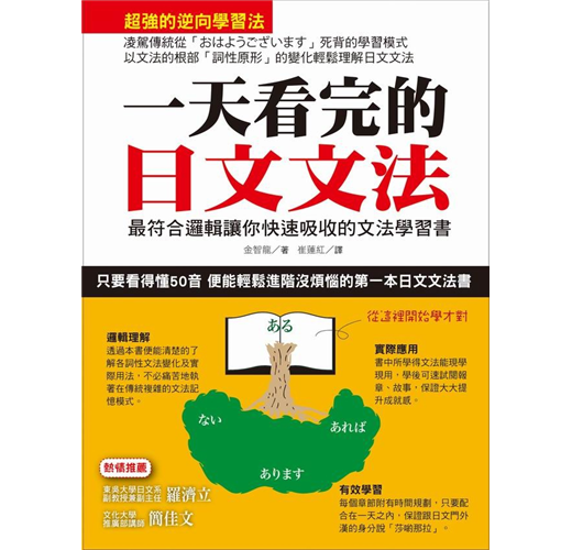 本書提出事半功倍的方法,避開敬體形跑第一棒歷來相關文法教學書的固有通性,將各詞性以原形開始介紹,即若將文法比喻成一棵樹,我們便從樹根(原形)的地方開始看起,而不是已經茂密成形卻無法彎折的樹枝(敬體形)。讓精湛的文字、邏輯,讓你了解各詞性的活用原來這麼簡單,透過本書保證聞一知十、舉一反三。