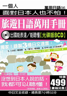 【另售】旅遊日語萬用手冊-附【出國能表達∕能聽懂】試聽CD1片特價199元★光碟特色 特色一、【雙重功能】聽力CD; 「功能1」-聽懂「這句話的日文怎麼說」! 「功能2」-聽「紅色關鍵字」,猜到日本人說什麼! 特色二、獨家錄製3種日文速度; 1。【分段】慢速度2。【整句】慢速度3。日本人的【口語速度】 特色三、日籍正音老師【一字一字慢慢唸】,單字、語調聽得一清二楚!1。【雙重功能】聽力CD; 「功能1」-聽懂「這句話的日文怎麼說」! 「功能2」-聽「紅色關鍵字」,猜到日本人說什麼! 「能說能聽懂」是出國旅遊時,與日本人溝通的重要關鍵。本CD兼具「能表達」與「能聽懂」兩種功能,為了加強讀者的學習效果,特別分為兩種錄音方式。 CD的【兩種錄音方式】; 錄音方式1→聽懂「這句話的日文怎麼說」! Step1聽【想說的話】→請幫我拍張照。 Step2聽【日文應該怎麼說】分段慢速度 Step3聽【日文應該怎麼說】整句慢速度 錄音方式2→聽「紅色關鍵字」,猜到日本人說什麼! Step1聽【正確意義】→怎麼調整遠近? Step2聽【日本人說的】慢速度 Step3聽【影響句意的關鍵字】 Step4身歷其境,體驗【日本人的口語速度】2。8片CD包含9大情境,117個主題,1500個常用句。 (1)8片CD共分為9大情境,都是旅行時我們常會遇到的狀況。包含;登機前、飛機上、下飛機、住飯店、到處玩、交通工具、買東西、吃東西、幫幫我。 (2)再由9大情境延伸出「117個主題」,例如;「買東西」這個情境下有「哪裡買得到∕哪裡製造的、能退換嗎∕能測試嗎、問價錢∕折扣後多少錢、一般的殺價、用盡辦法,只為殺價、結帳…等各種主題。每個主題包含約13個常用句,8片CD總共約1500個句子。3。CD獨家錄製3種日文速度; (1)【分段】慢速度(2)【整句】慢速度(3)日本人的【口語速度】 日籍正音老師【一字一字慢慢唸】,單字、語調一清二楚,聽完只有一個結論;沒想到日本人說的話,我都可以聽懂!想說標準的日文讓日本人佩服,想更快聽懂日本人說什麼,藉由本CD訓練「聽力」→能聽懂,以及練習「口說」→能表達,保證學習效果加倍!4。中日文完整收錄,8CD總長度7小時32分。 為了方便讀者光聽CD也能達到學習效果,本光碟完整收錄中日文句子,即使不對照書本也能輕鬆學習,隨時隨地皆可學,即使開車、搭捷運、做家事也能邊聽邊學習旅遊日語。 ◎「光碟版8CD」沒有包含書籍,如需對照書籍學習,請參考本公司出版的『旅遊日語萬用手冊』(收錄8CD完整中日文內容,定價199元)。