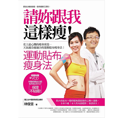 《請妳跟我這樣瘦!》作者林俊言醫師,集結多年物理治療臨床經驗及肌內效貼布的使用經驗,帶領各位利用以前被所有人視為「減重惡魔假期」的冬天,搭配使用肌內效貼布及專門為「永久性局部肥胖」所設計的「隨時隨地都能做的心機小運動」,讓層層厚重衣物覆蓋住身體的貼布,在家裏就能做的「心機小運動」也能讓你不用在冷天氣裡出門運動,輕鬆在家養成運動習慣,還能加倍消耗熱量,明年夏天來臨前,就能雕塑出完美又健康的身形喔!