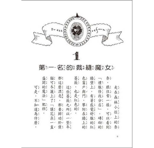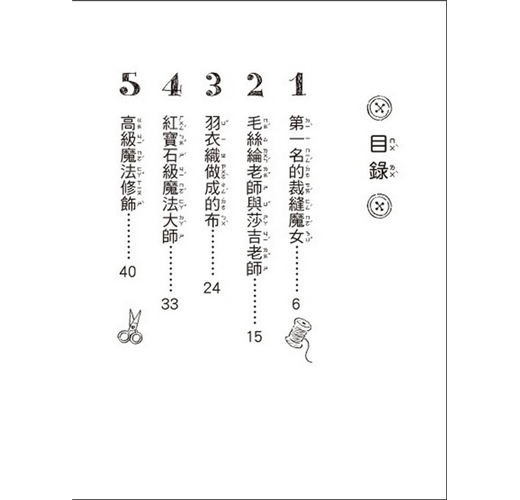 「誰是第一名的裁縫魔女呢?關於從很早之前就備受矚目,裁縫魔女小絲與六位訂做魔女的比賽,今天由什麼都行魔女商店的社長魔女公布了評審名單。評審是家喻戶曉的毛絲綸與莎吉。」