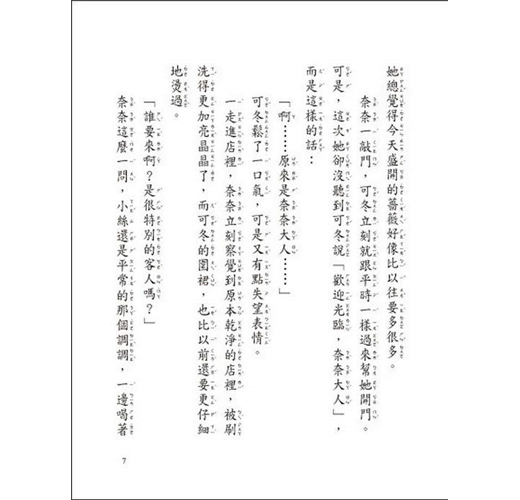 可冬像是鬆了一口氣,可是又更像失望的表情。一走進店裡,奈奈立刻察覺到一直很乾淨的店裡,被刷洗得更加亮晶晶了,而可冬的圍裙,也比以前還要更仔細地燙過了。