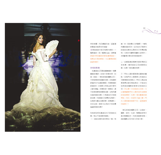 一、婚紗品牌和其他商品一樣,有高、中、低的價位可供選擇,一樣有所謂的婚紗名店。在符合自己預算內的婚紗品牌中去尋求自己所需的風格,可依店內實際拍攝新人的照片,來推斷是否是心目中的婚紗照。