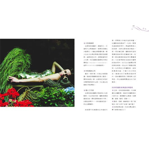 中型婚紗公司特色:屬於一般形態,市場上相當普遍。強調的是攝影師的個人風格,價格也較為一般。