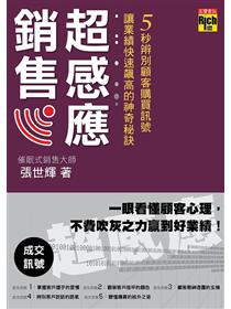 張世輝(DonnyChang)智感國際顧問有限公司的創辦人,他所創辦的威力行銷研習會,專門協助各行業的銷售人員如何以槓桿原理,事半功倍的銷售,並突破各階段之銷售目標。他還研發出全球第一套有效提升銷售效能的系統化工具,以及全球第一套能在最短銷售時間內成交的影響力策。現任:‧智感國際顧問有限公司總經理‧威力行銷研習會創辦人‧威力行銷實戰手冊(中英文版)設計人‧個人銷售效能系統、研習會創辦人‧美國NSA演說家協會會員曾任:‧聯合國激勵大使授證講師‧丹麥時間領導計劃系統授證講師‧國際催眠訓練協會授證催眠師‧全美銷售智者(RoberPecor)雙贏銷售(win-winSelling)授證講師經歷:‧YMCA青年會英語講師‧國際青年友好訪問團接待‧成功雜誌專欄主筆‧成功雜誌國際中文版協理‧成智國際公關顧問公司協理著作:《威力行銷》PowerSelling《催眠式銷售》E-mail:power.sale@msa.hinet.net