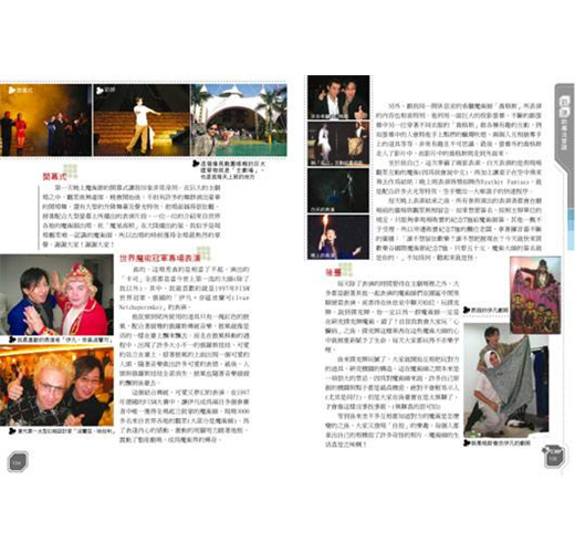 開幕式第一天晚上魔術節的開幕式讓我印象非常深刻。在巨大的主劇場之中,觀眾座無虛席。晚會開始後,不但有許多的舞群演出豪華的開場舞,還有大型的升降舞臺及聲光特效,把場面搞得很壯觀。接著配合大型螢幕上所播出的表演片段,一位一位的介紹來自世界各地的魔術師出場。托「魔星高照」在大陸播出的福,我似乎是現場觀眾唯一認識的魔術師,所以出場的時候獲得全場最熱烈的掌聲。謝謝大家!謝謝大家!世界魔術冠軍專場表演真的,這場秀真的是相當了不起,演出的「卡司」全部都是當今世上第一流的大師(除了我以外)。其中,我最喜歡的就是19...