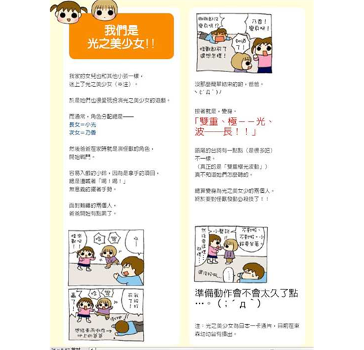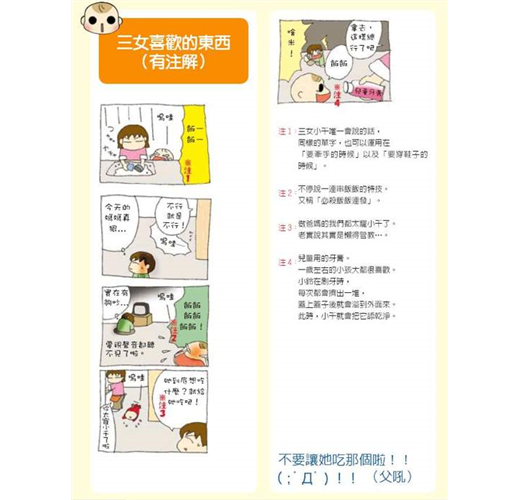 傳說中的爆笑人氣部落格終於出書了!自2005年10月部落格出道以來即廣受矚目,在部落格排行榜「育兒部門」中獨占鰲頭。總合排行榜前10名的佳績,更讓作者獲得2005年度Ameba部落格新人賞。應廣大閱覽者的要求,終於在2006年4月將部落格內容集結成冊。新進漫畫家的媽媽將長女小文(5歲.無厘頭的脫線小女孩)、次女小鈴(3歲.我行我素的自由人)、3女小千(1歲.社長兼妖怪飯飯小鬼)三個姊妹間所發生的大小「事件」,以漫畫及小短文,一點一滴紀錄下來的育兒戰鬥日記。三個女兒各有個性的爆笑插曲,文中穿插作者恰到好處的毒舌評斷,每個笑點讓讀者笑到欲罷不能。從文章間不但可以感受到作者身為母親養育三個年幼女兒的辛勞,也能感受到濃密的母愛。讓年輕的未婚女性們在邊讀邊笑間,不禁喚起她們「好想生個寶寶」的母性本能。
