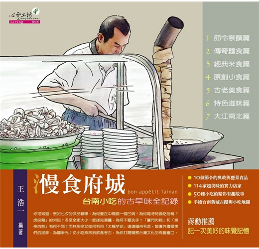 王浩一是愛吃愛玩的台南府城文史工作者,他以四年半的時間,精心企劃,深入訪談,從小吃典故到飲食考古,為你打開窺察台灣文化的有趣窗口。當然啦,書中還介紹一百多家生意興隆,口味獨到,讓你聞香下馬的小吃店家,絕對值得你按圖尋訪,吃遍府城,成為台南小吃專家!
