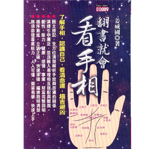 了解手相,認識自己,看清命運,趨吉避凶 ☆圖文搭配,全方位清楚解析手紋與命運的關係。 ☆演繹引申廣泛,並且融入易理相互搭配與闡微。 ☆個性、能力、健康、感情、事業、財富完整說明。 ☆循序漸進、立論正確、快速準確、編排簡明清楚。 ☆無須命理專業能力,人人可懂、簡單易學、快速上手。 手相學的起源相當早,根據現在印度各地的廢跡,壁畫中所殘留的古老記錄及婆羅門教所傳的口碑中,都可以瞭解到手相在古代印度是甚為流行。有關手相學,世界最古的記載是在聖經,舊約第三十七章第七節中,就有這麼一段記載:「每個人生下來,神便在手掌上刻劃著各種紋線,作為一種印記,叫所有的人知道他的所作所為」。 中國手的相學,亦具有悠久的歷史,遠在周朝(約在三千多年前)即已盛行,而比較完整的手相論著,是在西漢時代的許負,他所著的相手篇,可算是中國當時最有系統的相法,其後歷代各大名家,將手相學傳諸於世並深受信賴。 研究手相可以了解人的性格和品德,明白自己的能力傾向,探知健康狀況及預測未來的命運,進而趨吉避凶。