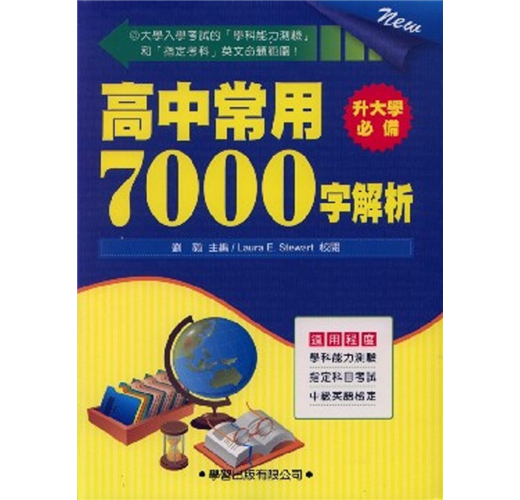 「高中常用7000字解析」的資料取材自「大學入學考試中心」新修編的「高中英文參考詞彙表」研究計劃報告。我們將所有字彙依照難易程度分為1~6級,以提高同學的背誦效率,其中第1級最簡單,第6級最困難。書末附有最新「電腦統計歷屆大學入試字彙」,有了這些資料,你就能確確實實掌握「學測」和「指考」。凡是在歷屆大學入學考試中,出現過四次以上的單字,我們以紅字呈現。