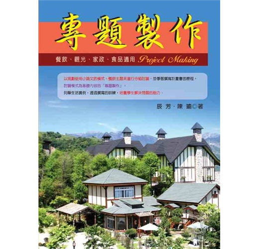 根據教育部給高中(職)餐飲科、觀光科和家政科之高職學生,規劃使用小論文的模式,以餐飲主題來進行分組討論,並學習撰寫計畫書的歷程,討論模式為基礎內容,列舉生活實例,透過撰寫的訓練,培養學生解決問題的能力。為規劃適合學校資源和特色與學生特質的「專題製作」課程綱要,所以編纂此書,期望可以達到「專題製作」設定之一般學科能力及專業能力統合展現的目標,在創意教學的過程中,提升學生學習的榮譽感、成就感,此外亦可提高升學甄試和就業謀職的成功機會。「專題製作」課程的教學成果,對餐飲科、觀光科和家政科則提供教學成果具體展現的機會,利於評鑑、招生和宣傳業務的推展。