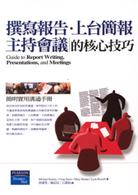 撰寫報告、上台簡報、主持會議是一般企業、學校或其他組織團體傳遞訊息的重要管道。以往可能只限特定專業人士,現在則人人都有機會碰觸到這些議題,坊間因而出現許多相關的參考指南,然而,有的是各主題自成一冊;有的是內容太過龐雜;有的則偏向個案診斷,較難真正契合一般讀者的需求。為畢其功於一役,本書完整收錄這三項主題,並以簡明、實用、親切的寫作方式提供專業、核心的溝通技巧。 本書特色 .提綱挈領:僅摘錄重點,擷取許多書籍和研究報告的精華,略去繁複的說明、案例、註腳、練習及問題討論等。 .實用便利:提供清楚而直接的工具,且僅納入您在專業領域中用得上的資訊。 .深入淺出:用心設計容易瀏覽的格式,使用直接、務實、非理論的語調來做說明。