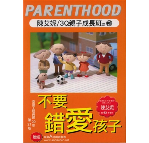 世上最真、最無條件的愛是親子之愛,最久最大的投資是教育子女,3Q父母想要教養出3Q子女,就必須避免20種錯誤教養,並完成8項親子三昧幸福工程。 現代家庭最大的付出,就是教養子女。但是近20年來,因為由西方傳來的教養觀念盛行,而傳統的威權教育又被大家否定,所以,著作百本,具有社會學、心理學、長期諮商個案經驗的作家陳艾妮完成了一套東方理念的親子教育系統-----3Q親子成長班。套書共分兩大部份,第一部份是現代父母常犯的錯誤;第二部份是現代父母應該做的8大任務!第一部份的第三本書,重點是: ●最容易成功的親子養育 ●子女的成本 ●子女的價值 ●愛與教育的迷思 ●教育靠家長而非部長 ●兼顧親子情與夫妻之情 ●無條件的愛 ●感受與感謝