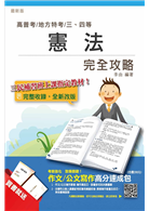 憲法完全攻略(高普考及各類三、四等特考)由三民補習班權威名師親自編寫,完整萃取憲法菁華重點,幫助您征服高普考、地方特考憲法這一座高峰!