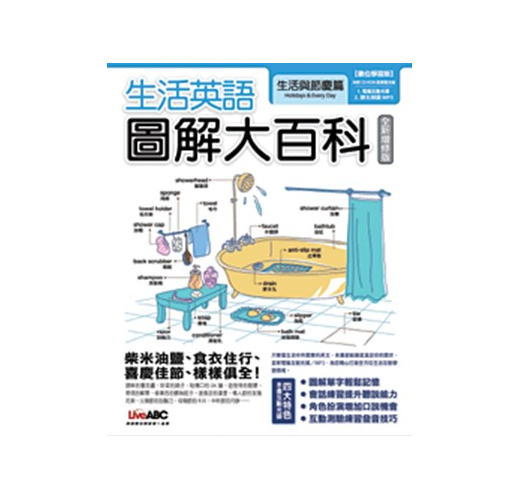 44篇課程 700個常用單字600個相關用語及例句 88篇實用會話以生活中各種場景和重要的喜慶佳節為主題,搭配活潑生動的圖解,教你各種物品的正確英文說法,並有延伸對話、相關用語及成語,內容豐富又實用,只要是生活中所需要的英語,本書都能徹底滿足你的需求。