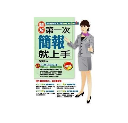 想到做簡報就頭痛?一上台簡報就緊張發抖?每個職場工作者都有機會上台簡報,一場成功的簡報可以為自己贏得讚賞、為公司爭取利益。不管是演講、產品發表、座談會、預算簡報等簡報場合,看似目的不同,都適用本書教導的簡報製作技巧,找出因應的簡報方式。本書新增如何製作簡報的內容,配合簡單扼要的說解文字、輔以實例解說,並以stepbystep的方式,透過圖解和實例教導讀者如何做出一份符合職場所需具說服力、溝通力的簡報。此外,本書從找出簡報重心、規畫簡報方式、製作簡報技巧、正式上台簡報訣竅,分別以流暢的說明文字、配合大量的圖解、實例,讓職場新鮮人也能立即掌握簡報內容、設計與發表的成功模式。