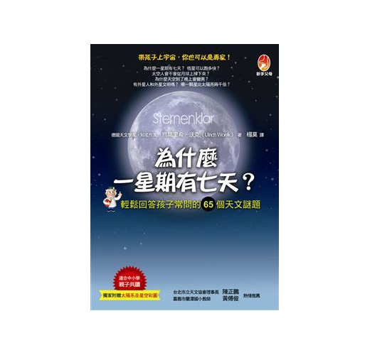 故事從一位天文學家∕烏爾里希.沃克送給他正準備要上小學的女兒∕史黛拉第一個禮物-就是一副望遠鏡,這樣史黛拉就能在夜空中尋找她的專屬星星了。第一次史黛拉誤把望遠鏡反過來看,所有事物全都變得好小好小,甚至比放大效果還要驚奇!接著,等到晚上月亮升起觀賞一輪清澈的半滿月時,光與影之間的曲線、坑坑洞洞的表面上使得望遠鏡中的月亮從一個平的光盤變成了銀色的球,這!就是月亮。從此她知道,月亮是一個巨大、繞著地球飛行的球。帶孩子上宇宙,你也可以是專家!?為什麼一星期有七天??星星一秒鐘可以跑多快??太空人會不會從月球上掉下來??為什麼到了晚上天空就變黑??有外星人和外星文明嗎??哪一顆星比太陽亮兩千倍?●本書精采重點問題1.紅色和藍色的星星,哪一個比較熱?2.可以保存五億年的鍍金唱片上儲存著什麼東西?3.要怎麼找到北極星?4.是誰第一個發現太陽在行星的中心?5.麥哲倫雲究竟是不是雲?(請參考第一、二章)6.為什麼是三次元空間,而不是五或十次元空間?7.透過蟲洞做太空飛行後,回得來嗎?8.為什麼會有「完全日蝕」?9.如果地球會自轉,為什麼我們感覺不到呢?10.為什麼金星是太陽系中最熾熱的行星?(請參考第三、四章)●本書特色◎培養孩子的觀察及想像力 引發孩子對於星空的探索能力,加強自然科學觀念。◎快速查找的天文知識依照四季時序,解答關於星空的65個常見問題。◎符合自然與生活科技領域包含太陽、月亮和恆星知識,並增強星象觀察能力。◎增進親子共讀時光 由專業的天文學家,以父親的角色為女兒解答天文知識。◎培養孩子的天文興趣 從簡明易懂的對話中,讓孩子成為小小天文家。◎參加天文科學營的好幫手 增加天文素養,參與天文活動變得更有趣。◎值得家庭與學校珍藏的天文書籍 由天文學家以淺顯易懂的方式?述基礎天文知識。