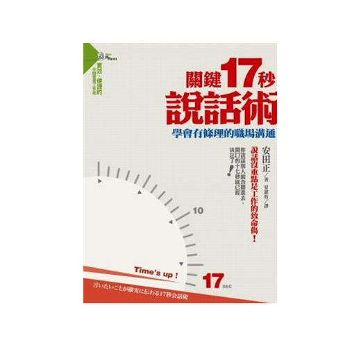 17秒,是一個人對話語短期記憶的最適時間。本書作者教導你如何訓練自己的思緒整理和說話邏輯,在「關鍵的前17秒便準確說出重點」的表達技巧。從此工作、生活更順利又有效率!