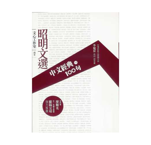 《中文經典100句-昭明文選》內容所介紹的名句有:悲哉!秋之為氣也,蕭瑟兮,草木搖落而變衰、黯然銷魂者,唯別而已矣、文人相輕,自古而然、咸自以騁驥騄於千里,仰齊足而並馳、文章經國之大業,不朽之盛事、裁為合歡扇,團團似明月……等,優美的名言佳句,令人目不暇給。
