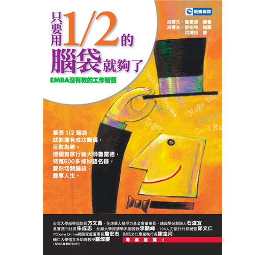 【內容簡介】 無關學經歷,也無關景氣,只要是職場上班族,多半都會有「這個工作適不適合我自己」、「下一個工作是否會更好」、「公司的理念與我有差異」等疑惑。究其原因,這是缺乏所謂的「工作智慧」。 德國首席行銷及辯術訓練專家洛爾夫?魯雷德,從數十年講座課程中,精挑細選出五百多句激勵人生的幽默語錄,輕鬆帶領讀者「解剖腦袋」,尋找工作智慧——取得自己的生涯輪廓,活出自己獨特的職場人生。 作者長年的輔導經驗顯示,能夠利用「半型腦袋」的人,生活不但比較快樂,也較有可能成功。至於半型腦袋怎麼來的?簡單來說,就是善於利用別人的經驗法則,唯有提昇腦袋,將使你啟動關鍵的競爭優勢,無往而不勝。 本書綜合全球成功者與知名人士的經驗與言論,並透過德國知名插畫家幽默的線條筆觸,不僅能讓你會心一笑,也能為你創造一種競爭者無法複製的成功。【關於本書】 ★超過50位全球名人,500多條錦囊妙計,讓你──縱橫職場的工作DNA、比別人快半拍的獨創性構想、造就最幽默的生活器度。 ★單憑1∕2腦袋,就能讓你握有成功籌碼,反敗為勝。特蒐500多條妙語名錄,要你切開腦袋,輕鬆盡享多采人生。 ★德國首席行銷名嘴魯雷德說:「只要讀通名人語錄,就能掌握全世界的知識。」 ★台北大學商學院院長方文昌全球華人競爭力基金會董事長石滋宜萬寶週刊社長朱成志台灣大學經濟學系副教授李顯峰104人力銀行行銷總監邱文仁PChomeOnline網路家庭董事長詹宏志財訊文化事業執行長謝金河輔仁大學德文系助理教授羅燦慶專業推薦。