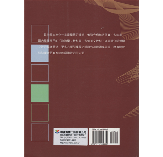 作者任教時,曾以Austin Ranney的《Governing:An Introduction to Political》和Michael Roskin的《Political Science:An Introduction》作為教材,但因政治學教科書均以英文撰寫,引用例證都是國外經驗,致使國人學習時產生隔閡。本書即為解決是項問題,以本國學生需求為出發點撰寫。