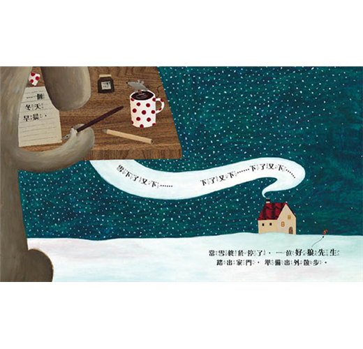狼覺得心裡很不平衡~在他讀過的故事中,所有的狼都很壞、很可怕,又很貪心。於是,為了改寫歷史,他決定寫一個關於一隻好狼的故事,故事就從「雪地裡的腳印」開始……猜猜看,他最終會戰勝自己的野狼天性嗎?